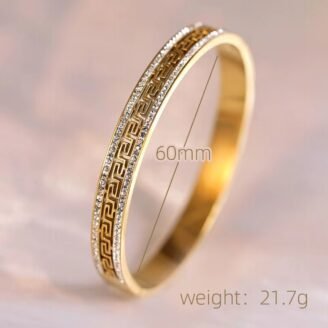 Add effortless elegance to your style with this 18K Rose gold plated bracelet from VdeLante. Designed with a refined Greek key pattern and sparkling detailing, this bangle offers a timeless, sophisticated look. Made from durable stainless steel, it is lightweight, waterproof, and resistant to tarnishing — ideal for everyday wear or special occasions. A versatile…