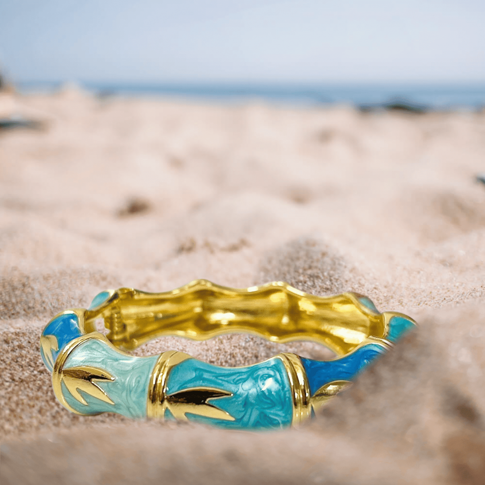 Its bamboo-inspired silhouette and glossy turquoise enamel detailing add a refreshing pop of color, symbolizing balance, growth, and strength. Designed to be anti-tarnish, hypoallergenic, and comfortable for all-day wear, this bracelet transitions seamlessly from casual chic to formal elegance