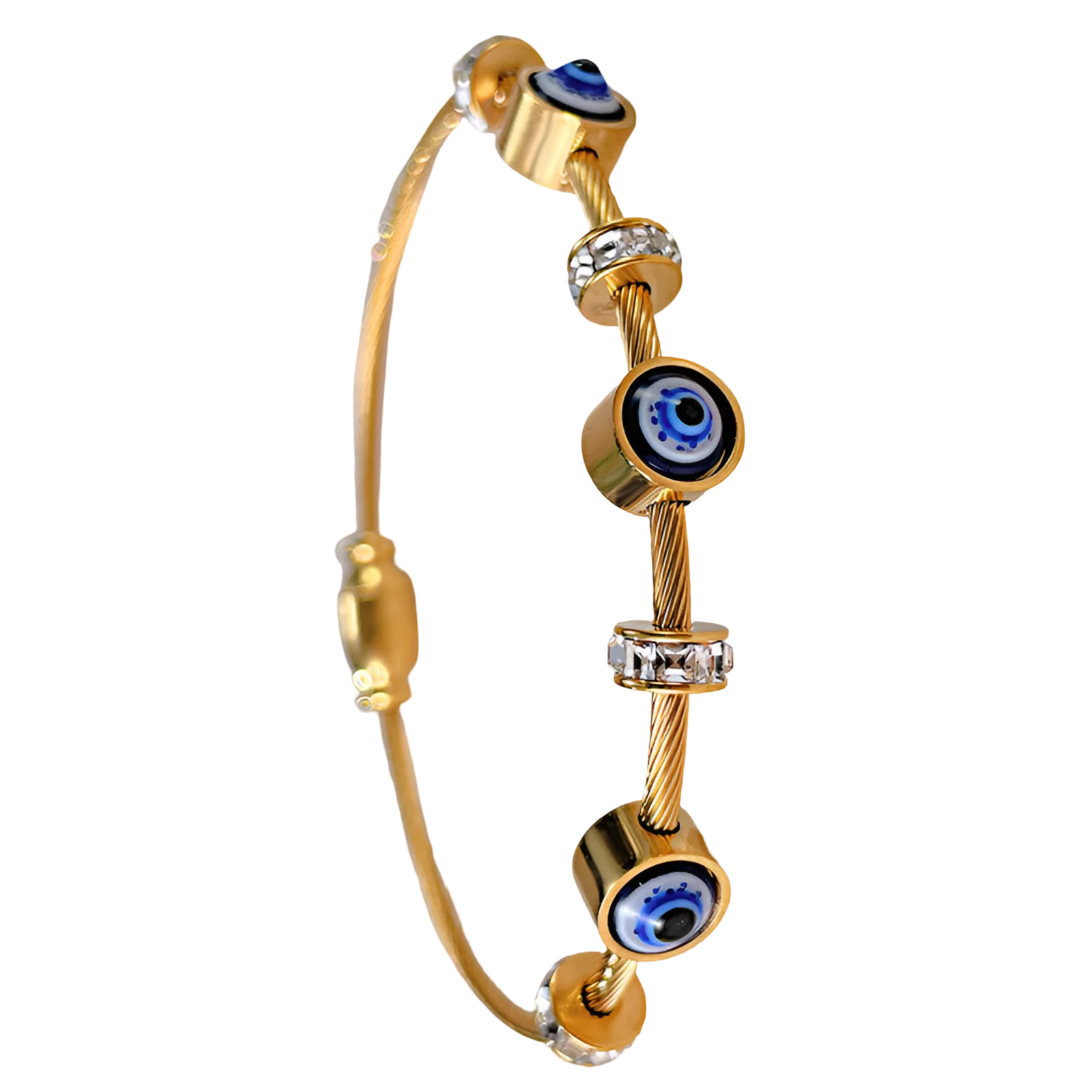 Blue Evil Eye Wire Bracelet Gold/Rose Gold