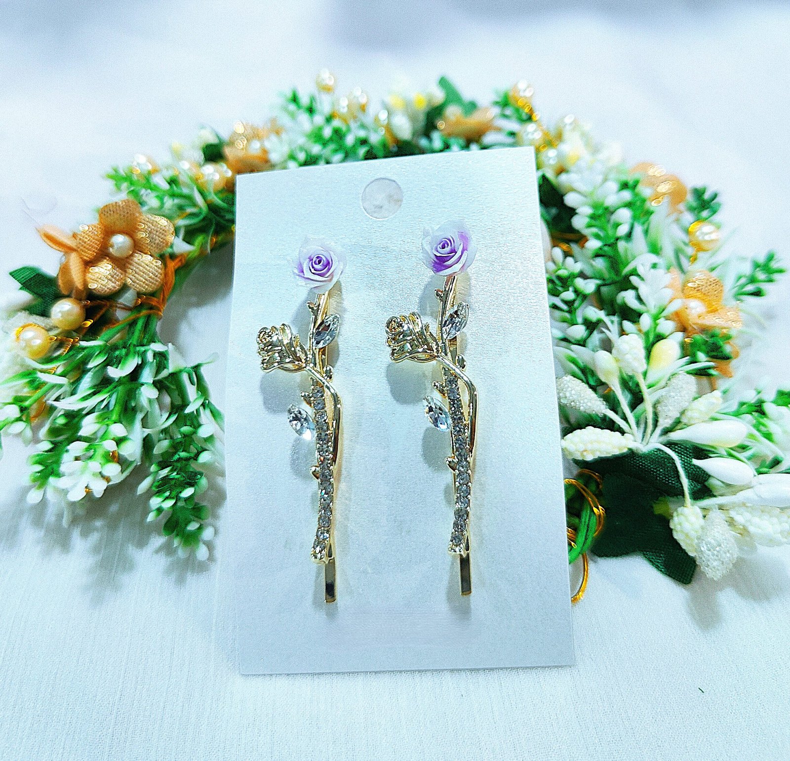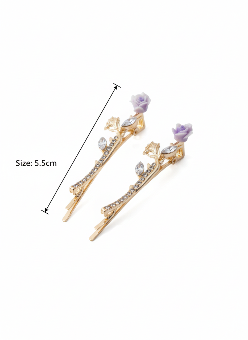 Crystal Rose Hair Clips — Purple Enamel