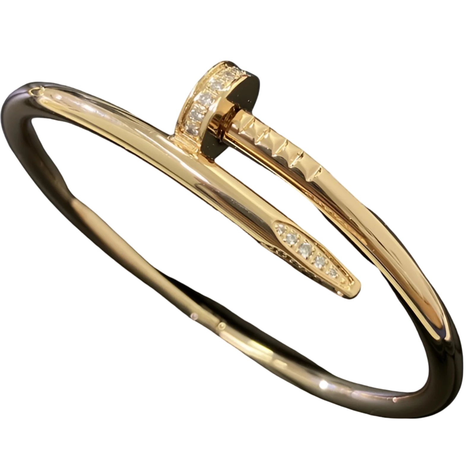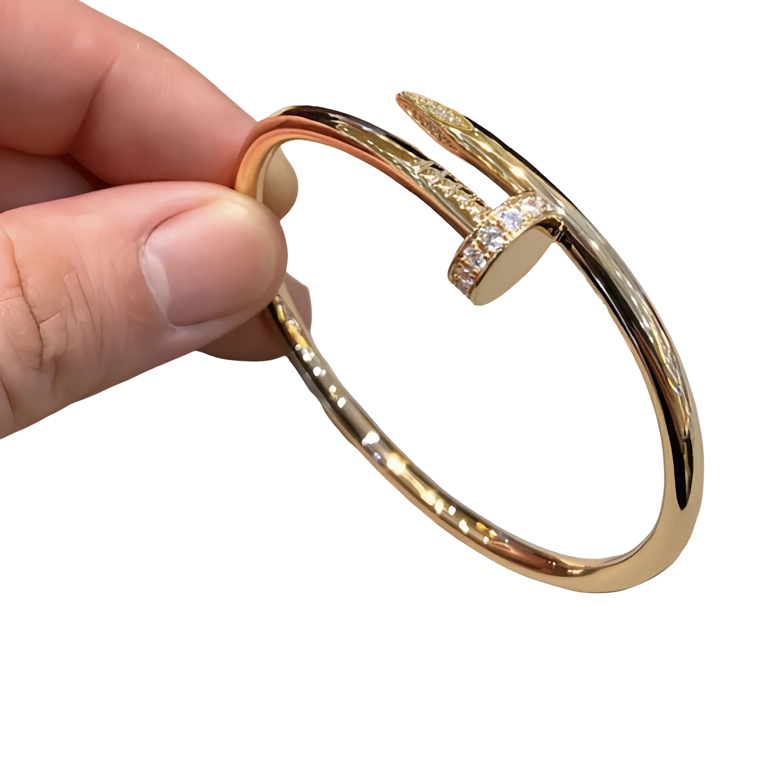 Make a bold yet refined statement with the VdeLante 18K Gold Plated Stainless Steel Nail-Shaped Bracelet. Designed with a sleek, contemporary silhouette, this unisex bracelet wraps elegantly around the wrist in a polished nail-inspired shape, symbolizing strength and individuality.