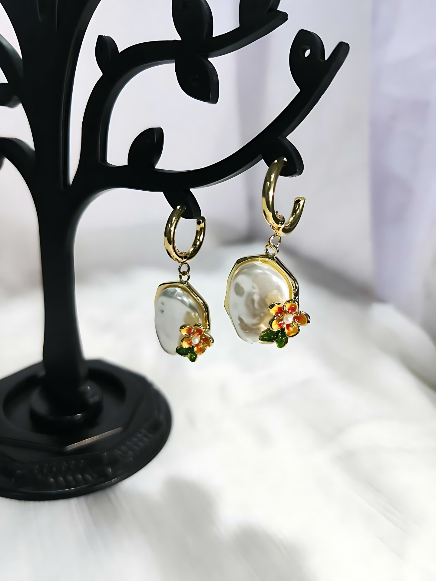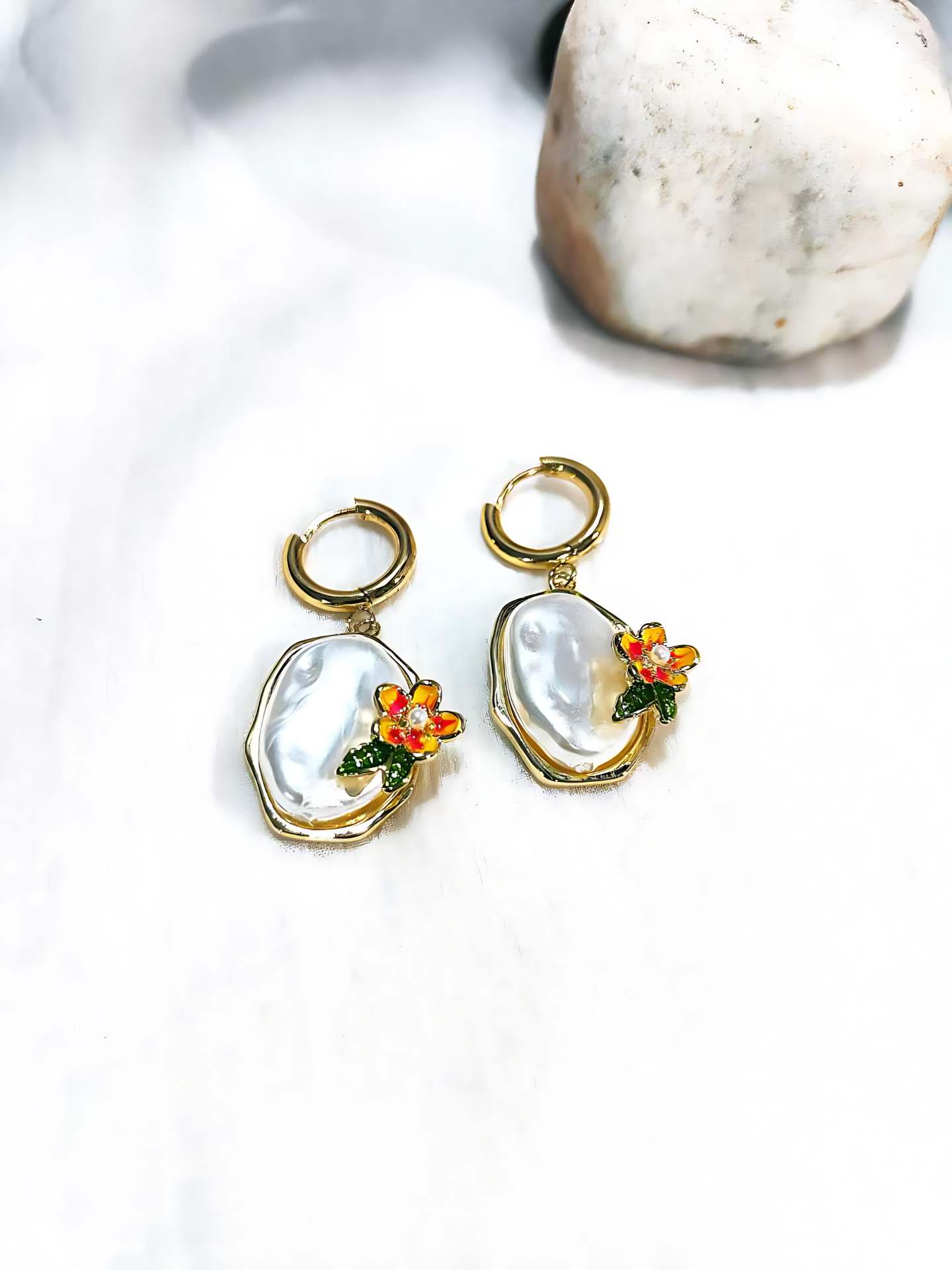 Elevate your everyday elegance with VdeLante’s handcrafted floral pearl stud earrings. These earrings feature a unique natural shell-like pearl base with a delicate hand-painted enamel flower. Made with premium stainless steel and coated in 18K PVD gold plating, these earrings are waterproof, sweatproof, and anti-tarnish — perfect for everyday wear and special occasions. Lightweight, hypoallergenic, and designed for all-day comfort with a bold, feminine touch.